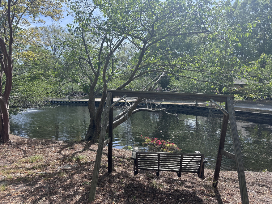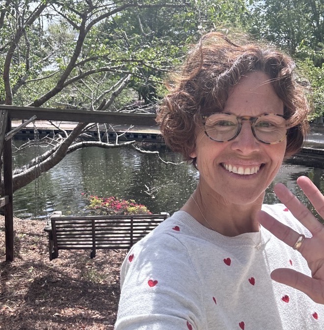 This month's photo comes from my front yard — my favorite spot. Every morning I come here with my coffee, settle into the swing, and get connected. The birds, the ducks gliding into the pond, the flowering trees and bushes, the Spiritual stillness — this is where I tap into who I really want to be for the day. Some days it's hard to hold onto that feeling once life gets going, and that's okay. I still find so much value in starting here — with my swing, my coffee, my dog, and the sunrise.